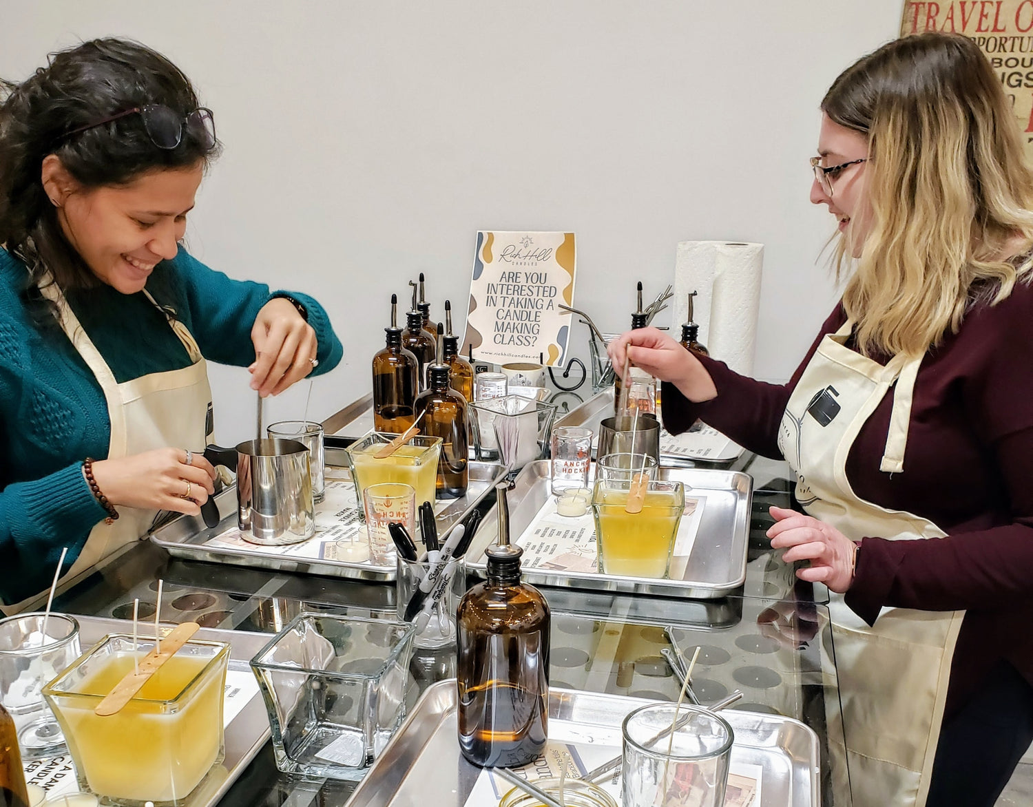 - Labeling & Finishing: Choose to create your own scent name and add it to own of our labels to personalize your candles.