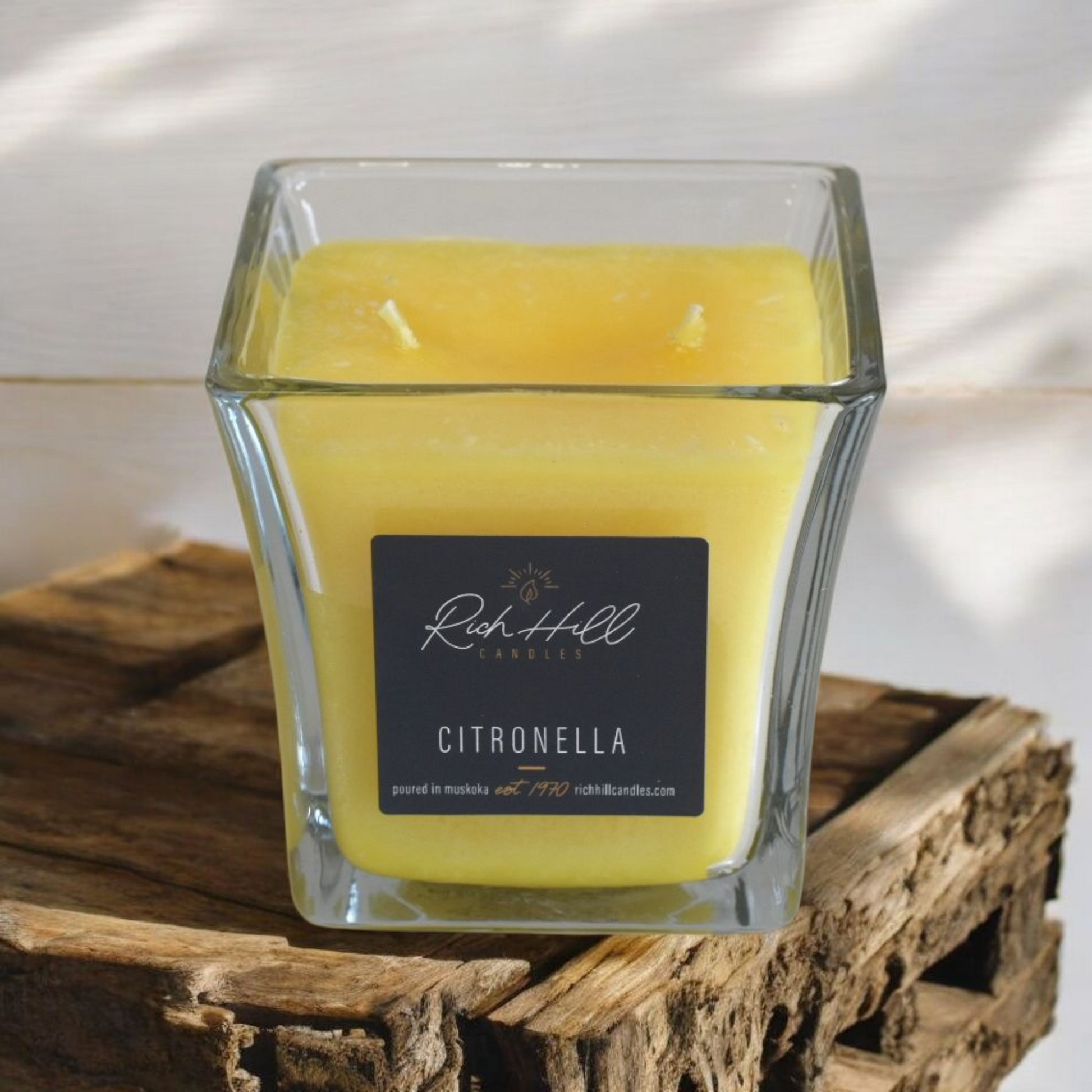 Citronella Java Oil. Candles come in a yellow colour.