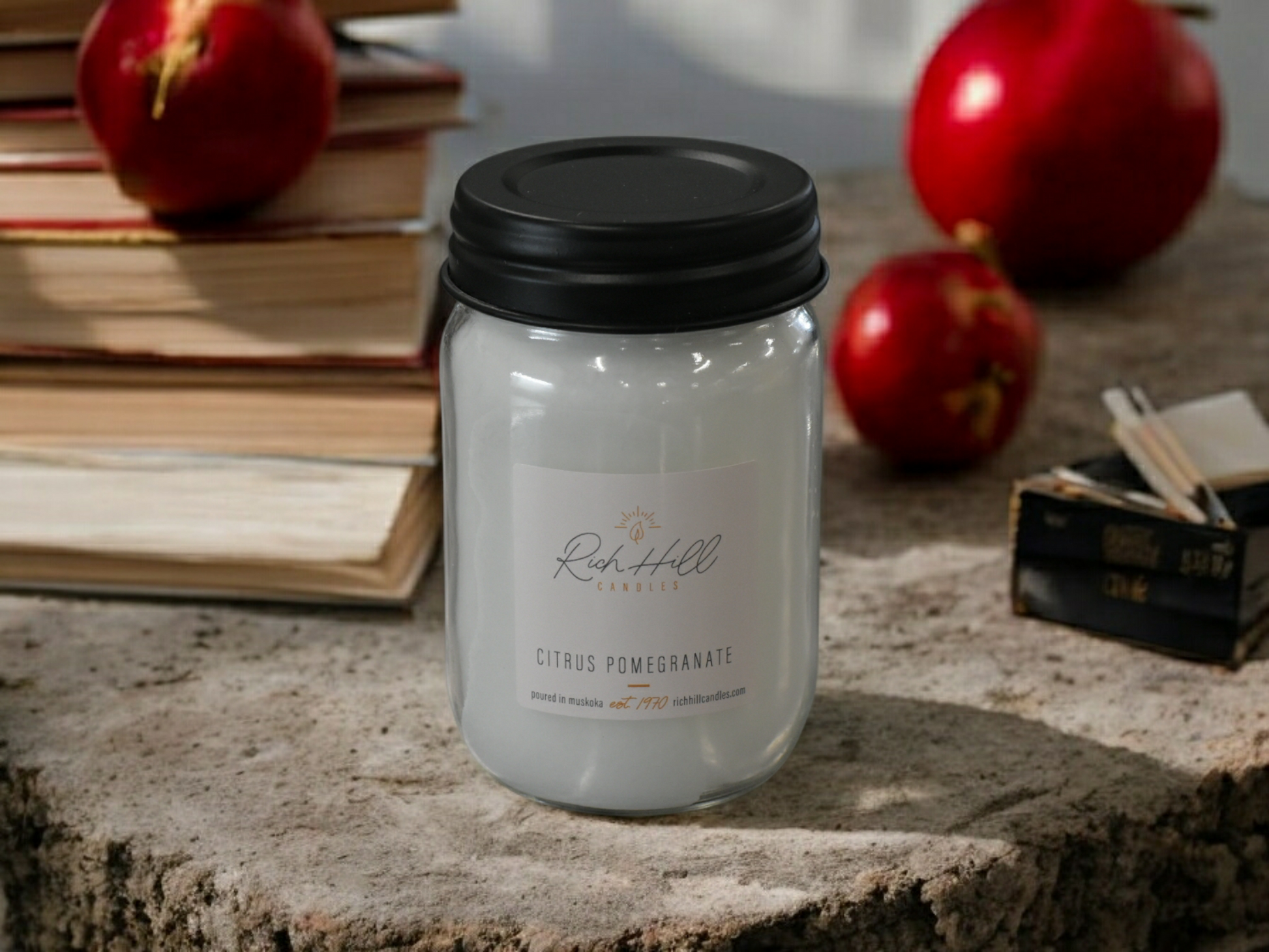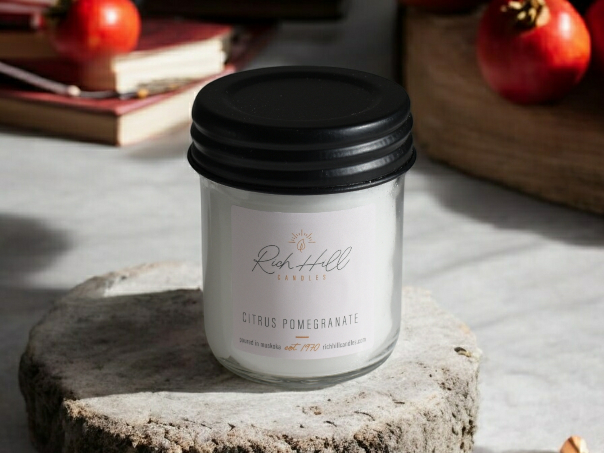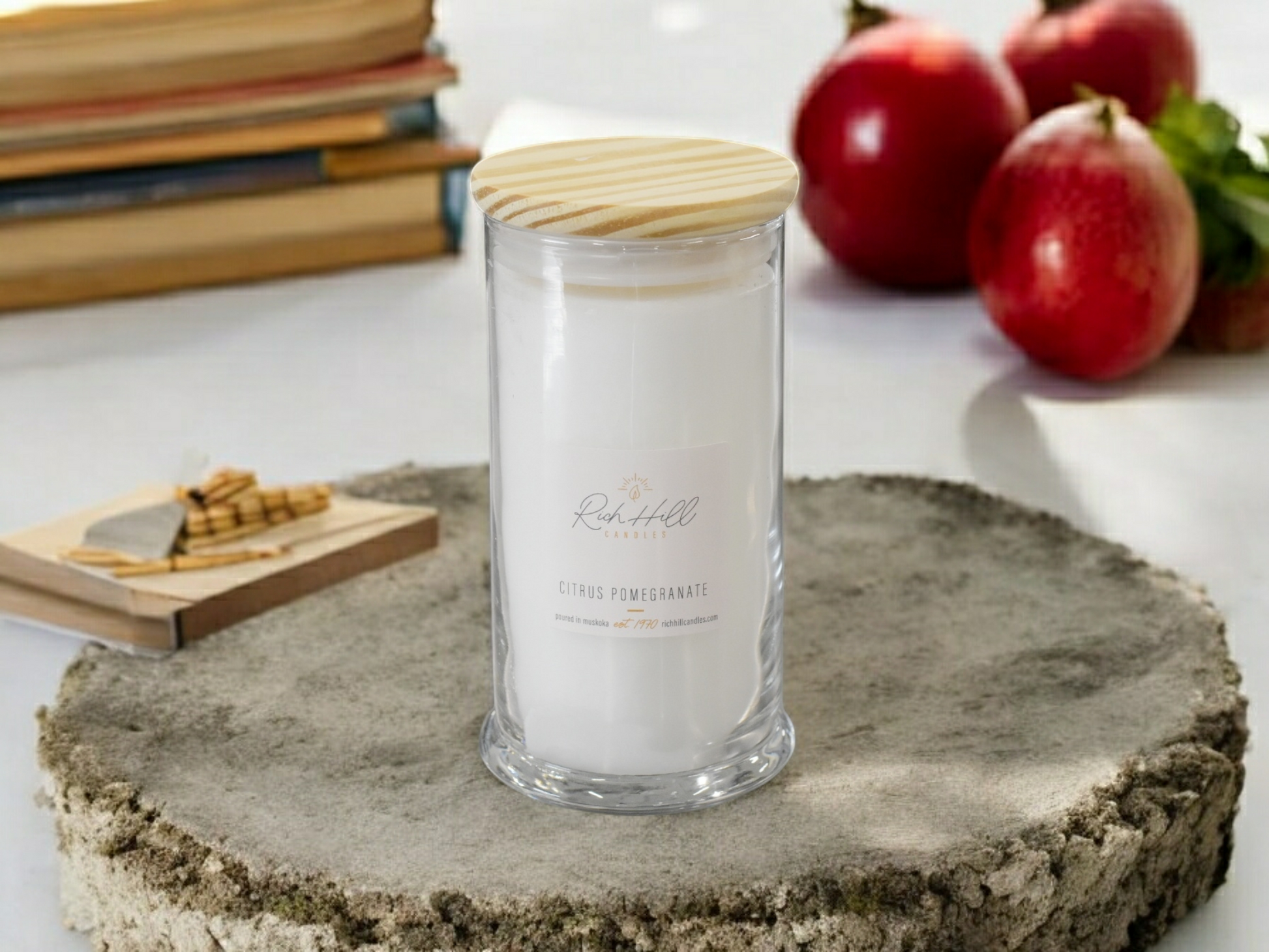 Sweet oranges infused with lush pomegranates aroma. Candles come in a white colour.