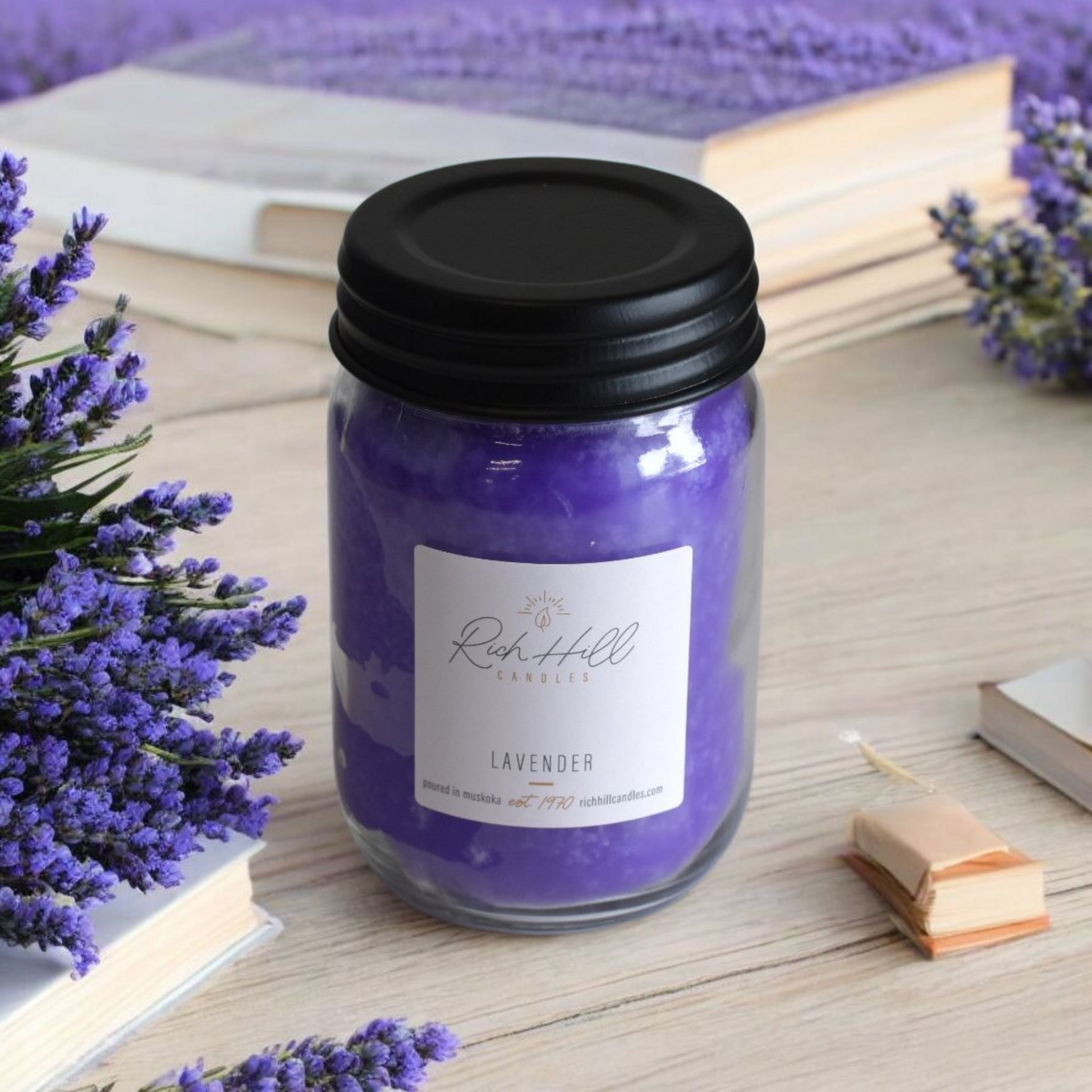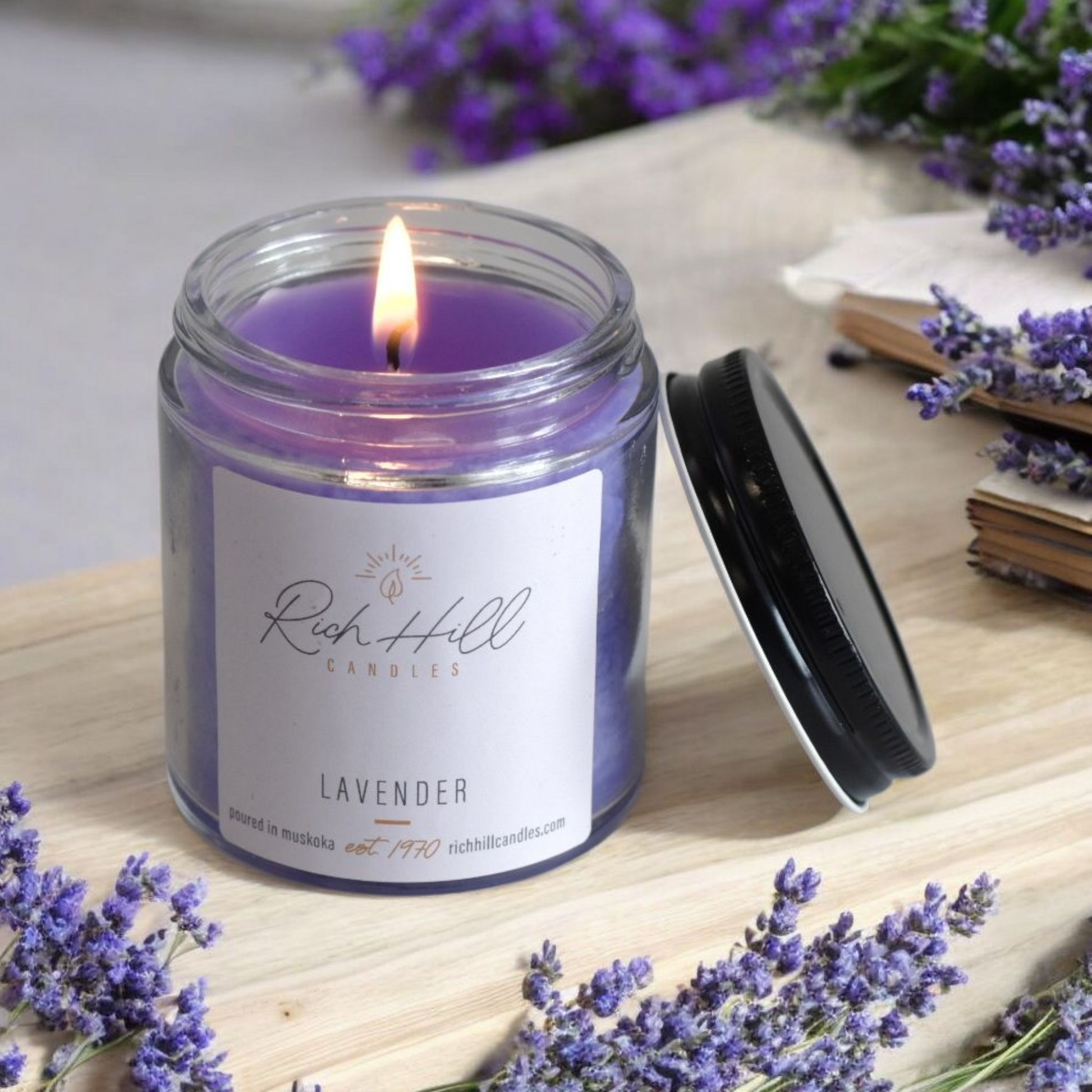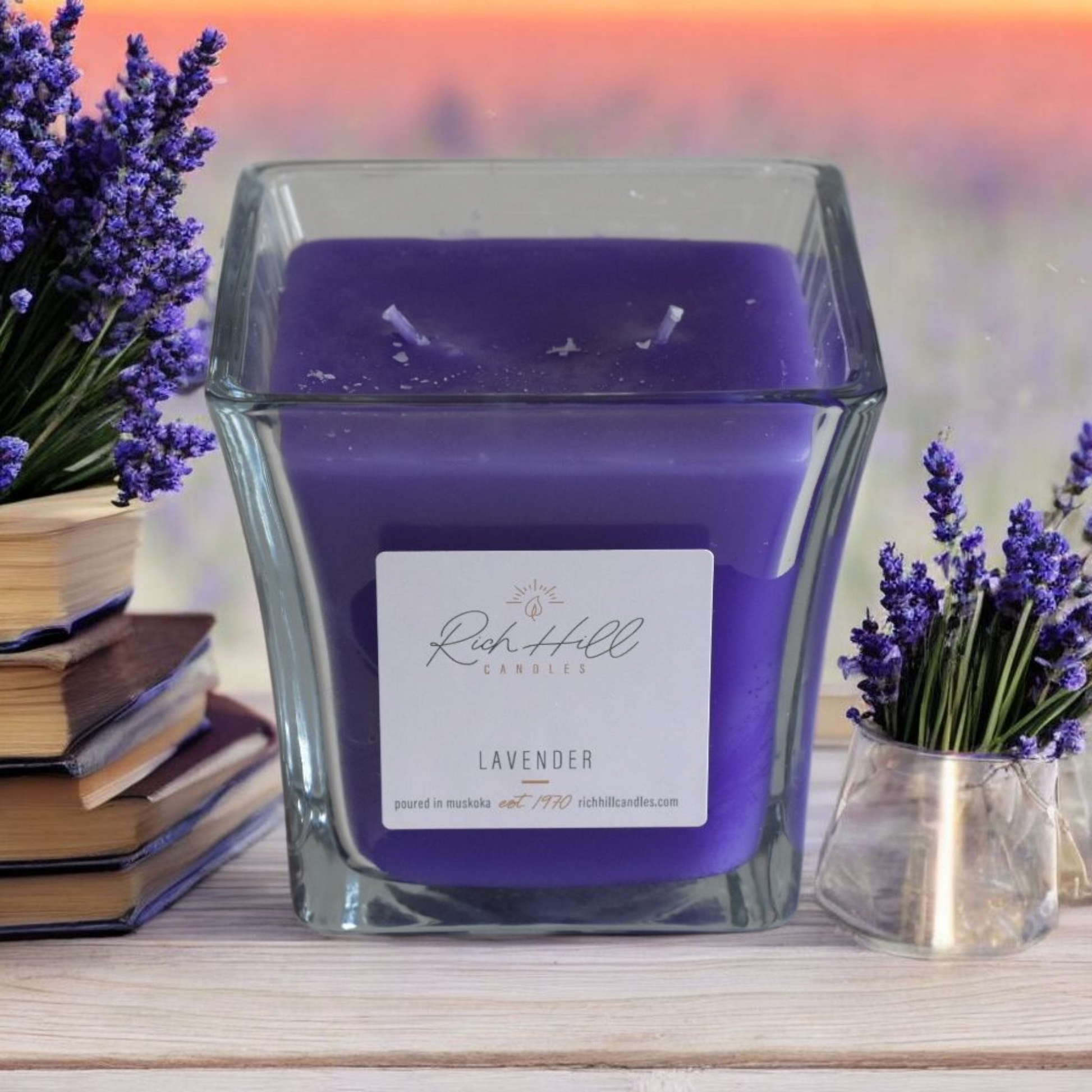 Sweet lavender flower aroma. Candles come in a purple colour.