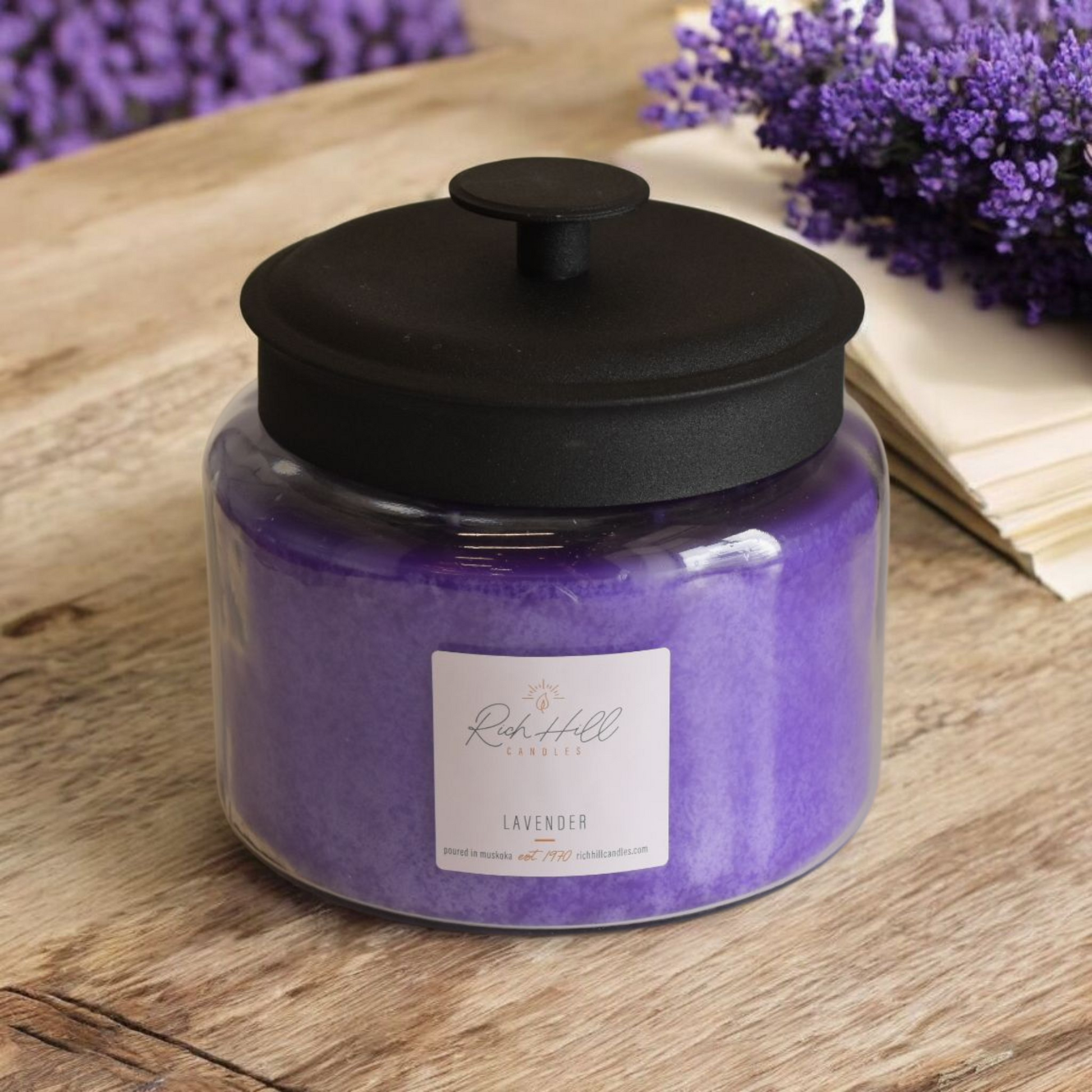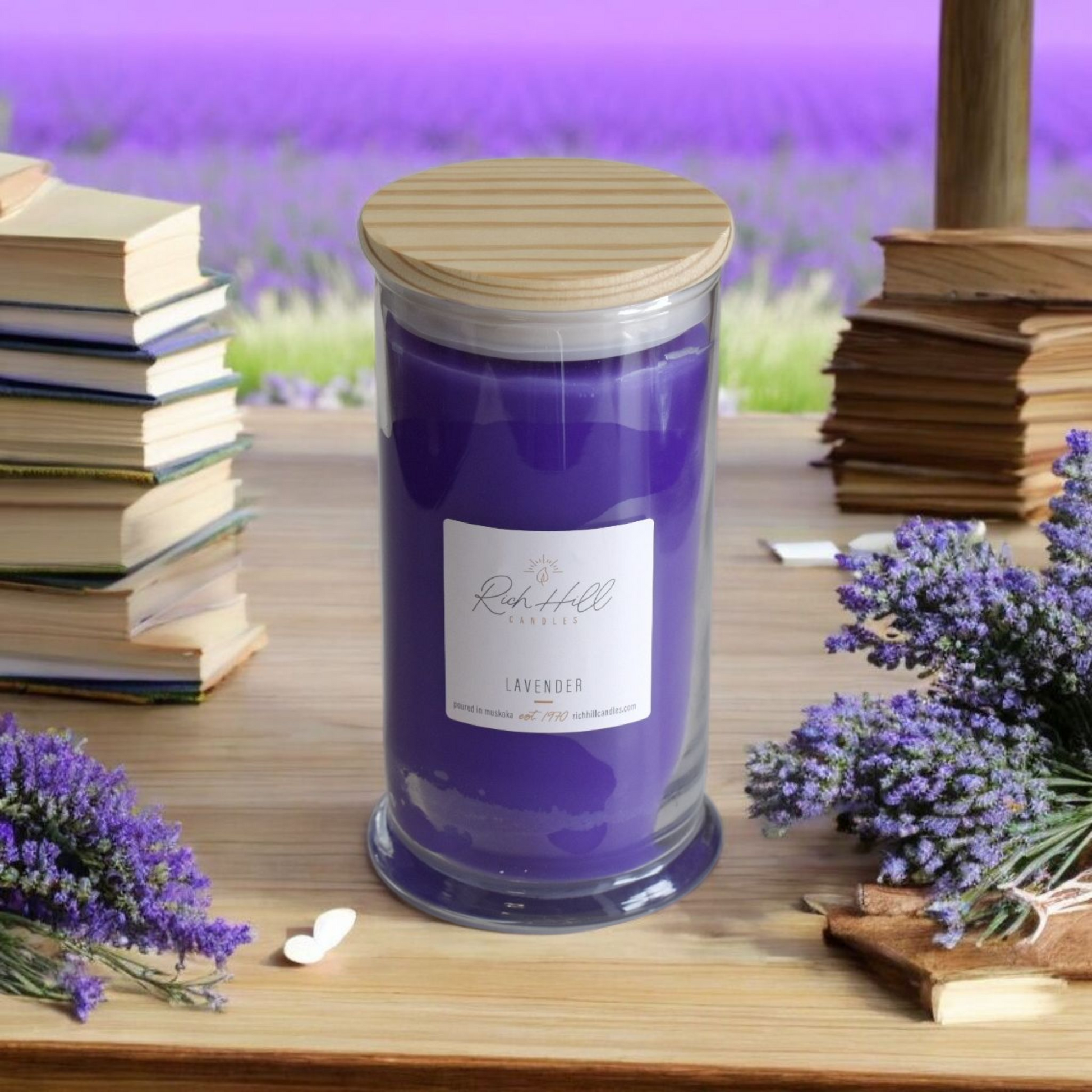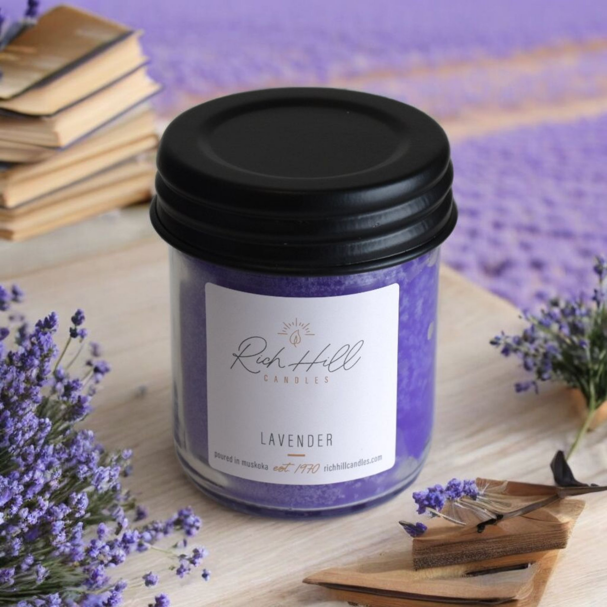 Sweet lavender flower aroma. Candles come in a purple colour.