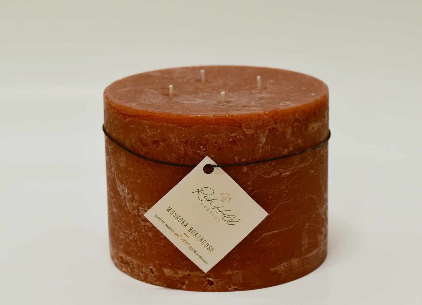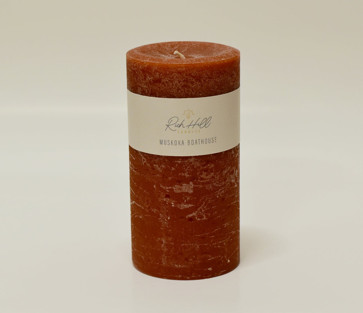 Cedar infused with orange aroma. Candles come in a rust colour. Candles have a rustic finish.