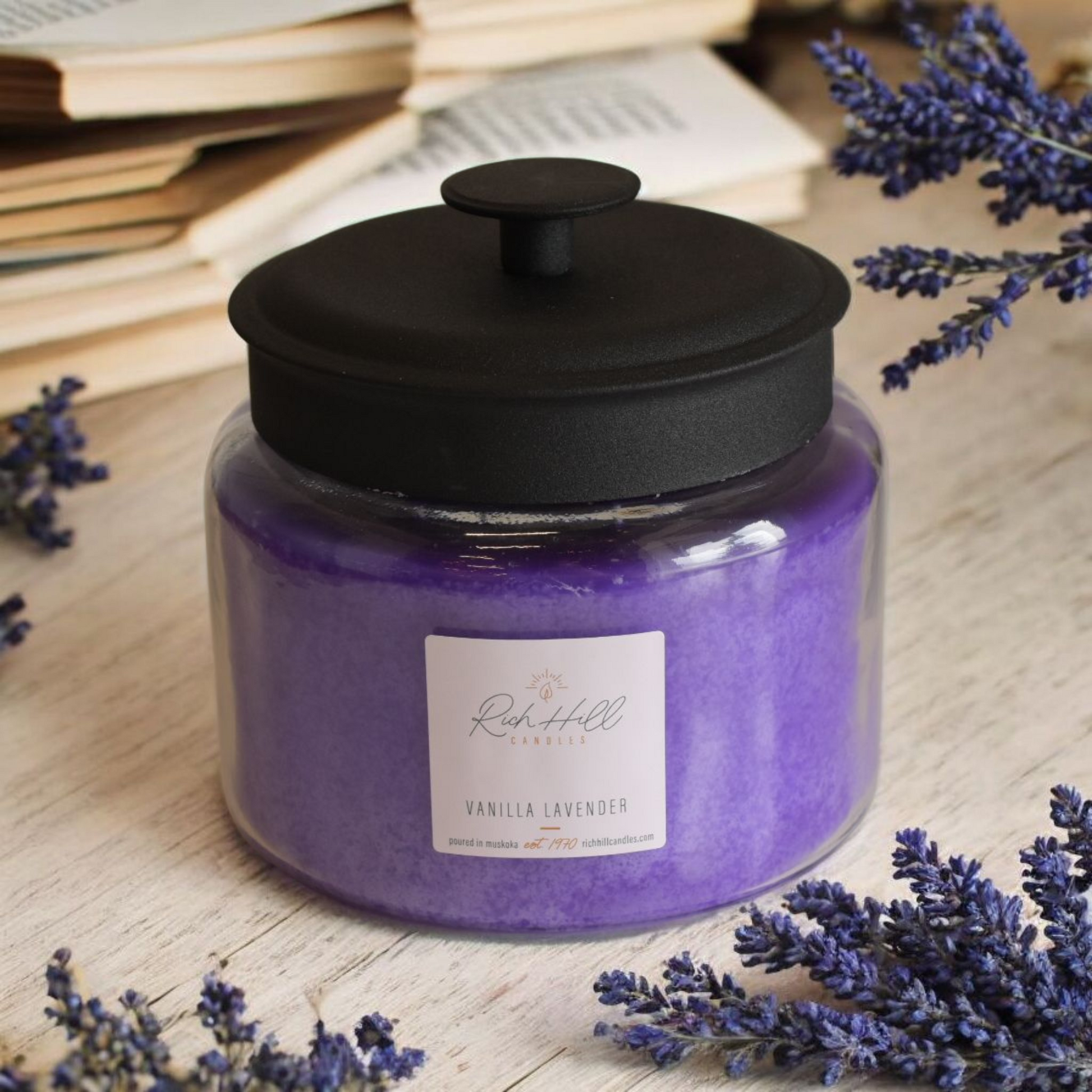 Vanilla with hints of lavender aroma. Candles come in a light purple colour.