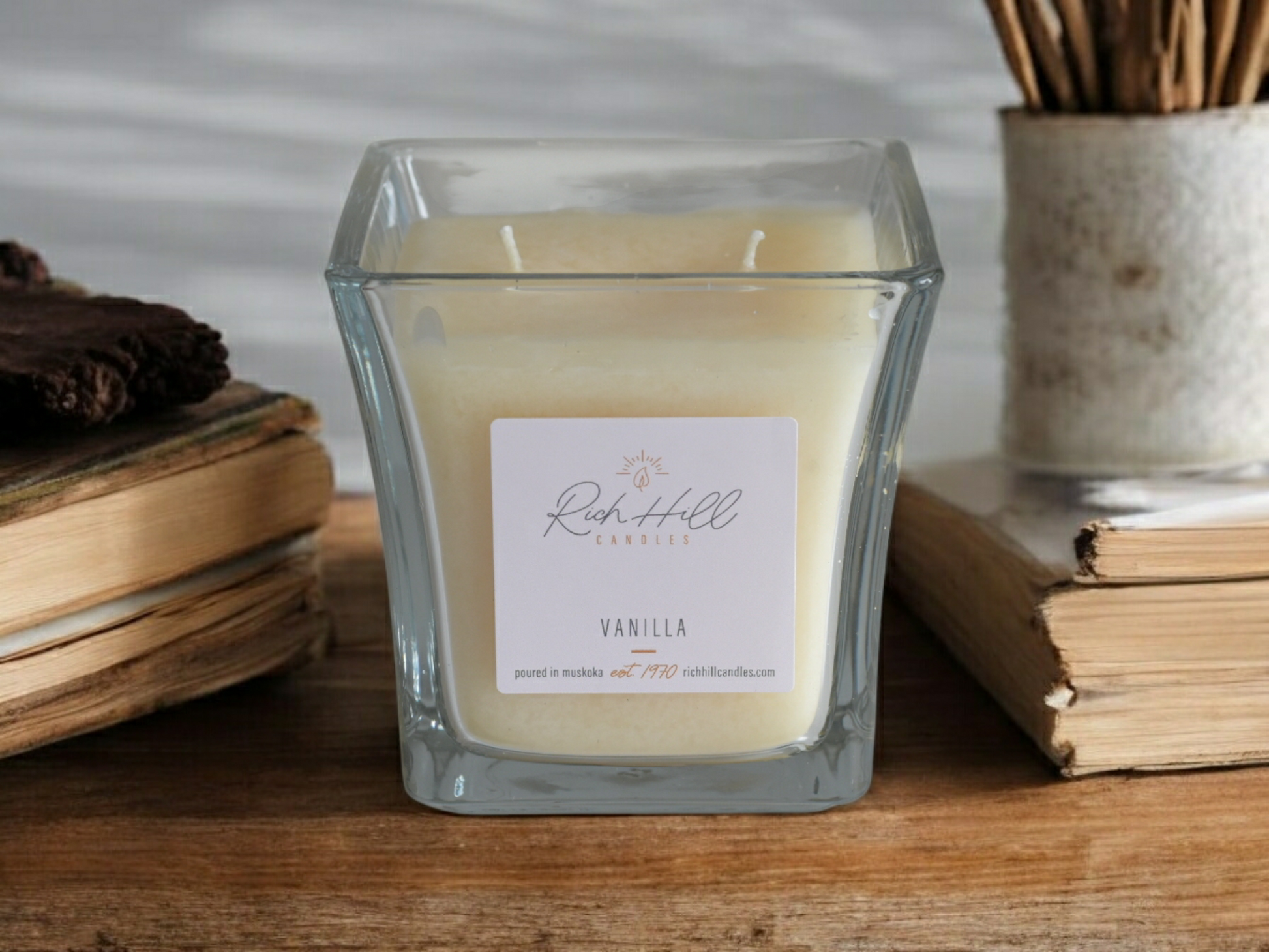 Buttery vanilla aroma. Candles come in an ivory colour.